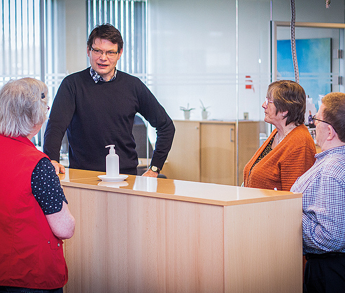 »Jeg ville ikke længere udsætte mig selv for ikke at have tid til at gå i kirke, til møder, til bibelkreds eller læse i Bibelen. Det skulle der være tid og overskud til. Det ændrede ikke på, hvad jeg skulle lave på jobbet, og jeg kunne stadig arbejde mange timer, men jeg havde fået et nyt fokus og et nyt mål,« siger Bjarne, som sammen med familien er aktiv i Herning Kirke og Indre Mission i missionshuset Bethania. Han har desuden været med til at etablere en lille bedegruppe for mænd, som mødes en søndag aften om måneden for at bede og læse i Bibelen sammen.