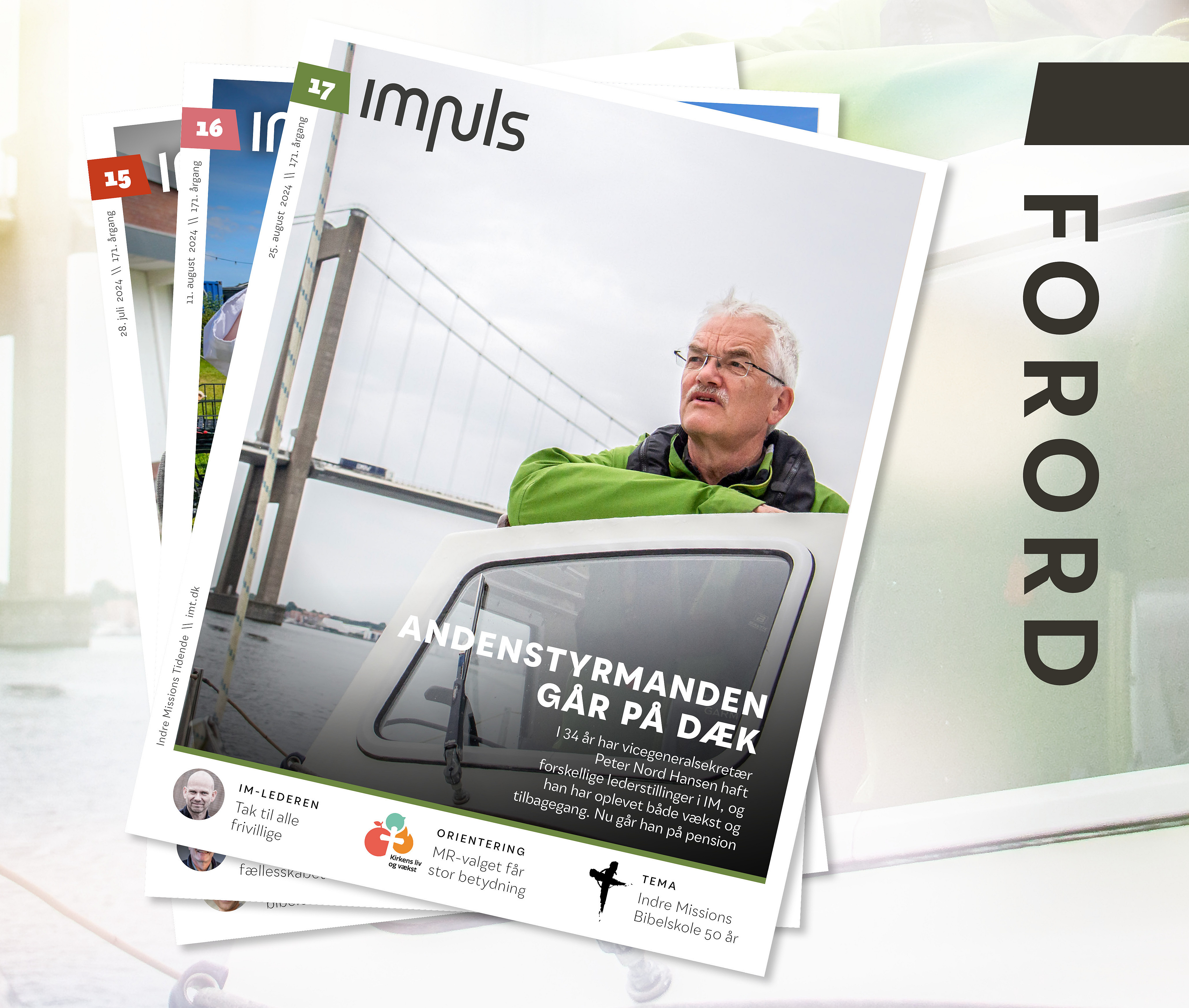 At tro på Jesus er ikke blot én gang for alle at antage en bestemt, uforanderlig overbevisning, men det er en rejse ind i et åndeligt landskab, som kontinuerligt udvikler os og langsomt forandrer vores syn på os selv og verden omkring os. Målet er sat, og kompasset er indstillet, som Søren Skovenborg skriver om de store trosforbilleder fra Det Gamle Testamente. Men udfordringerne undervejs kan være meget forskellige, og vi må hele tiden lære nyt for at holde kursen. Det er en rød tråd gennem denne udgave af impuls.