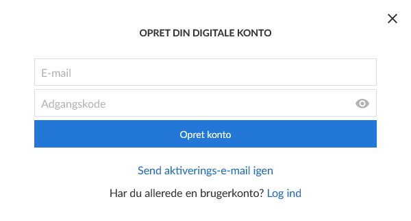 - Skriv den e-mail og den adgangskode, du selv ønsker, og tryk derefter på Opret bruger / Opret konto