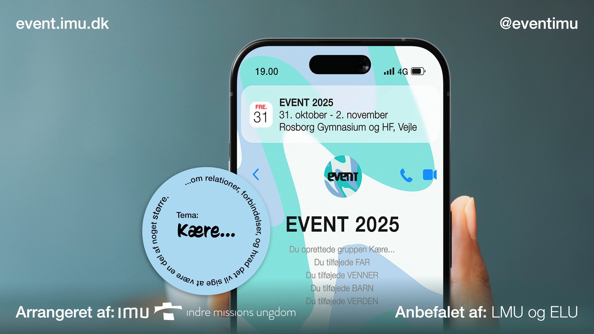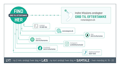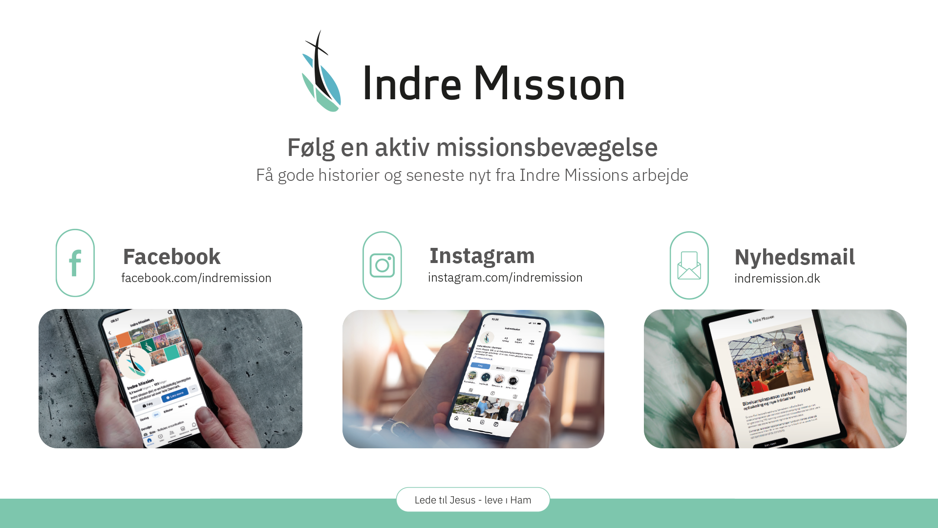 Vi håber, du vil være med til at fortælle om Indre Missions arbejde i dit lokale fællesskab. Vi har derfor samlet en række skærmannoncer, der kan bruges til at gøre opmærksom på Indre Missions mange aktiviteter.