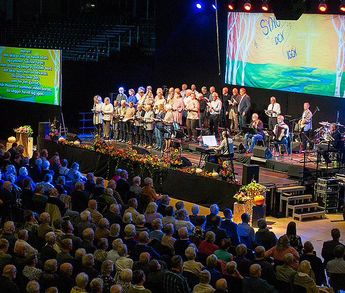 "Sang giver alt! Det er en dejlig måde at prise Gud på, og det har en kæmpe betydning i mit liv. Vi glæder os hvert år til Syng den igen," siger Ellen Margrethe Jørgensen fra Skjern, der sammen med sin mand og datter sang med i scenekoret.