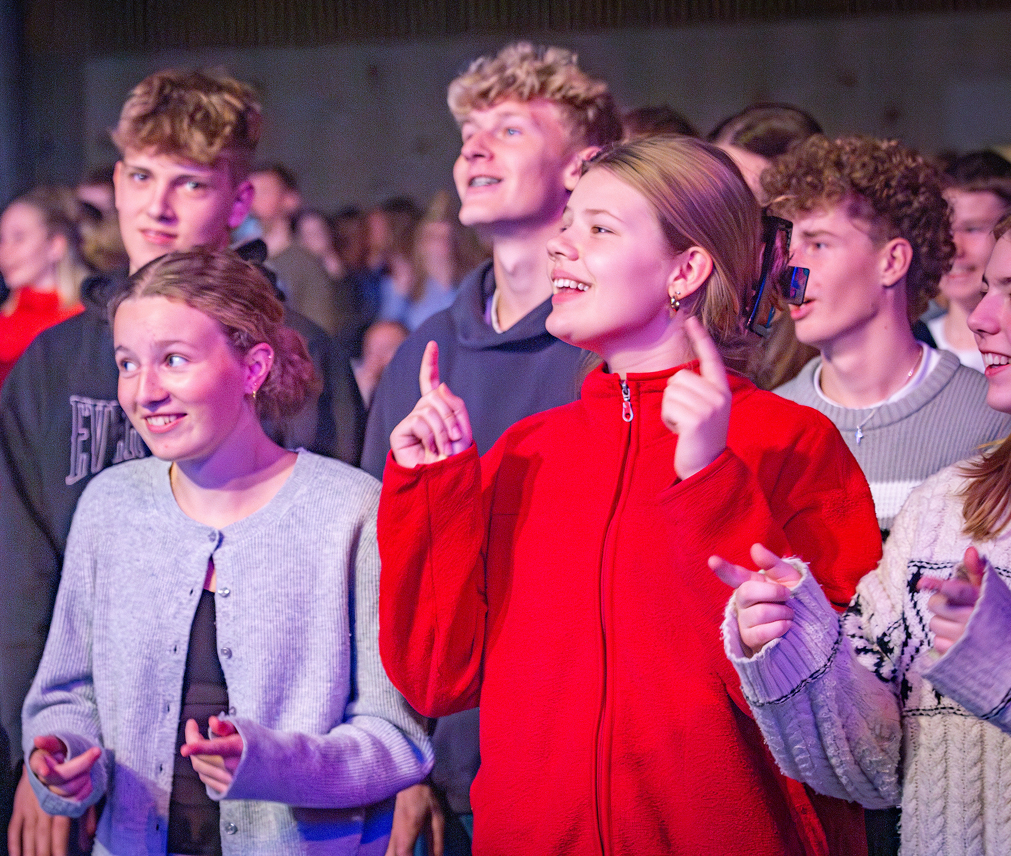 Hovedparten af programmet foregik dog i gymnasiets hal, hvor energiske værter og et dygtigt lovsangsband lagde op til de forkyndende møder og en stor lovsangsfest lørdag aften.