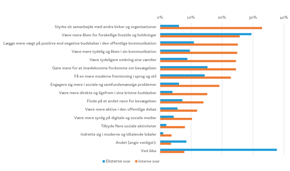 »Hvis Indre Mission skal styrke sit omdømme, hvilke af disse tiltag vil så have størst betydning for dig?« Det spørgsmål stilles både i den eksterne og i den interne undersøgelse.