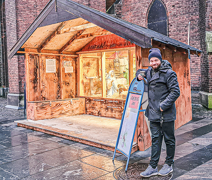 SnakTro, Indre Missions evangelisationsteam, er nogle af dem, som i julemåneden står ved krybben. Robert Svendsen, konstitueret leder af teamet, står klar til at fortælle om nogle af gade- og krybbeoplevelserne, men det er så koldt, at han byder på en kop kaffe i det nærliggende Kirketorvet, der er en lounge, som Indre Mission Region Aarhus er med til at stå for.
