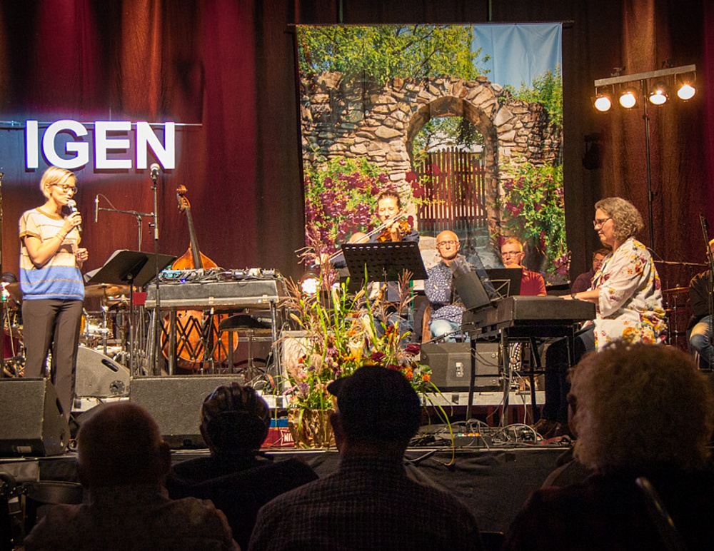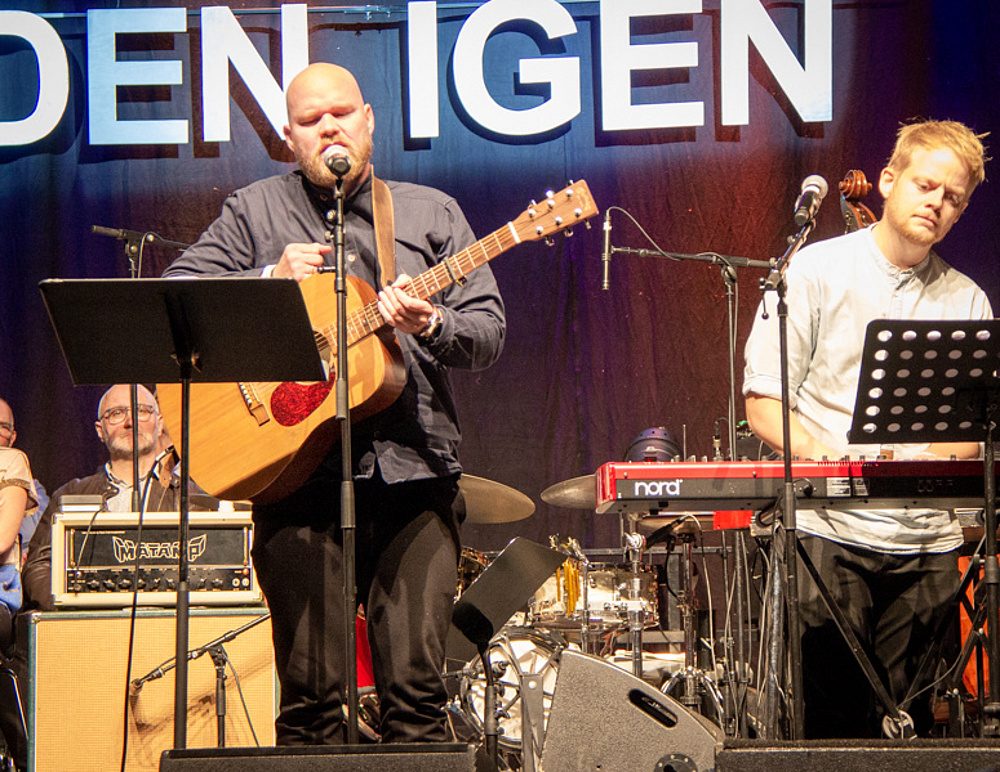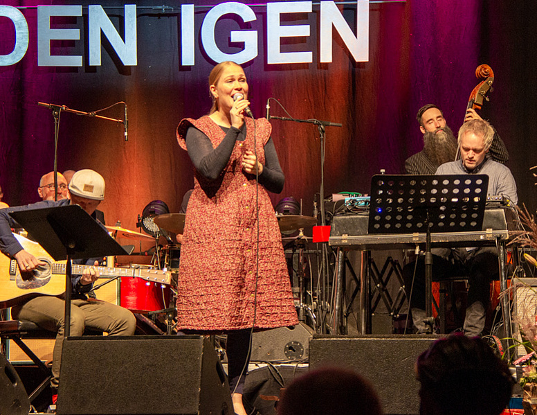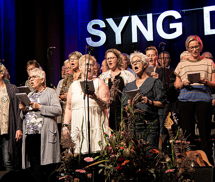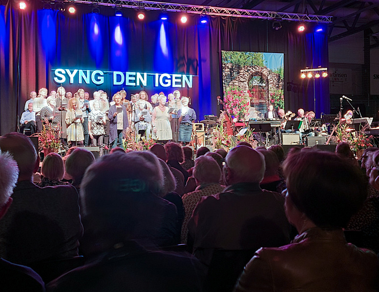 Overvældende fælles lovsang, dygtige solister og mange glade mennesker fra nær og fjern. Syng den igen i Ringkøbing-Skjern Kulturcenter lignede helt sig selv. Og dog var der noget, som ikke var det samme denne lørdag aften den 9. oktober. Stemningen havde ligesom fået et nyk opad, som om det kunne lade sig gøre. Smilene var ekstra brede, lydniveauet af snakkende mennesker var ekstra højt, og så var der flere, som havde glasklare øjne eller lige måtte rømme sig et par gange.