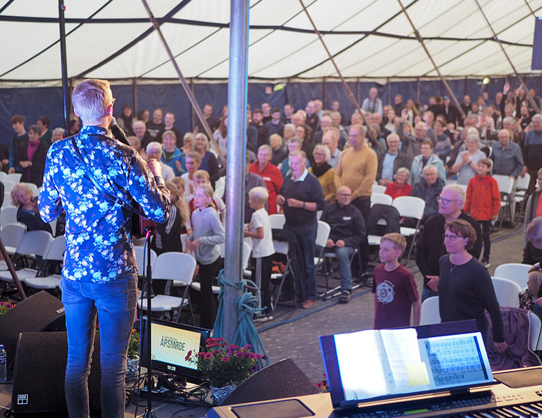 Der var liv rundt omkring på Mørkholt Strand Camping, hvor man alle steder kunne høre gamle venner og bekendte hilse på hinanden. Og der var mange at hilse på, for i år havde omkring 1300 deltagere fundet vej hertil. Selvom regnen tidligere på ugen havde truet med også at møde op, var weekenden i stedet præget af høj solskin, hvilket bekræfter påstanden om, at solen altid skinner på Indre Missions Årsmødefestival. I det velkendte blå mødetelt hørte man en summen af småsnak blandt de første, der havde fundet sig en god plads til den åbningsfest, som snart skulle være startskuddet på en indholdsrig weekend. Langsomt steg lydniveauet, i takt med at teltet blev mere og mere fyldt.