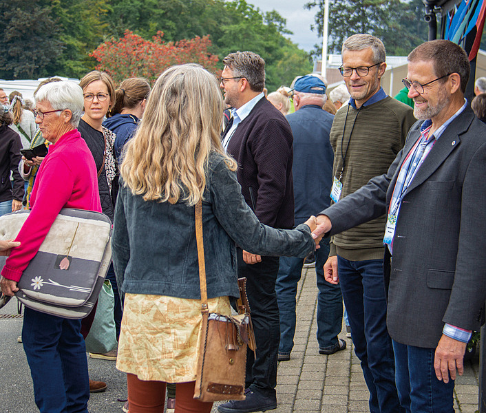 Enkelte hilste med albuen, men langt de fleste fik et godt gammeldags håndtryk, da medlemmer af IM’s hovedbestyrelse tog imod de mange gæster ved indkørslen til Mørkholt Strand Camping. Efter halvandet år, hvor møder og arrangementer har måttet aflyses eller tilpasses skiftende coronarestriktioner, markerede lørdagens gensynsfest, at de sidste restriktioner nu endelig er erstattet af gode anbefalinger og sund fornuft. Kun spritautomaterne mindede om, at pandemien stadig florerer.
