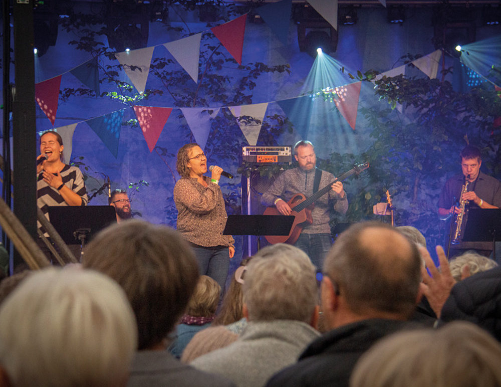 For mange af deltagerne blev eftermiddagens lovsangsdel det første store arrangement med fællessang, siden sundhedsmyndighederne udråbte fællessang til noget af det farligste, man kunne foretage sig. Det kunne i den grad høres i teltet, hvor volumen-knappen blev vredet helt i bund.