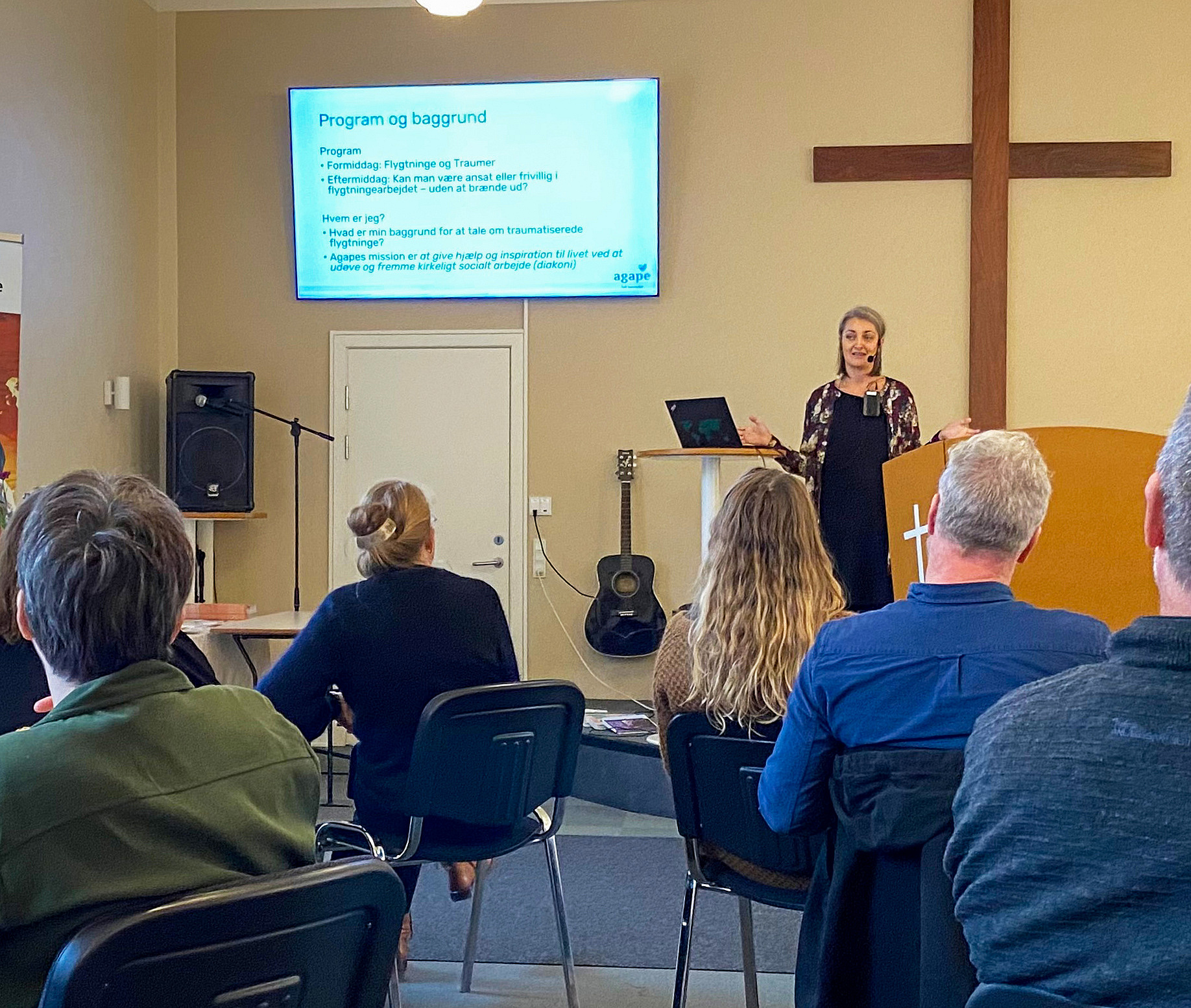 En temadag om flygtninge samlede godt 50 deltagere. Psykolog Michelle Lind Kappel brugte formiddagen på at undervise deltagerne om traumatiserede flygtninge, som der var særligt fokus på.