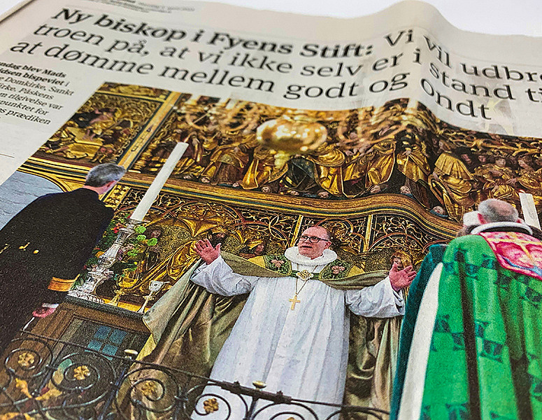 IM's formand Hans-Ole Bækgaard glæder sig til at møde Fyns nye biskop Mads Davidsen, der blev indsat ved en festlig bispevielse palmesøndag.