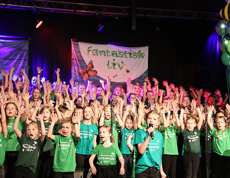 Mere end 300 sangglade børn fyldte Sydvestjyllands Efterskole til Gospel-kids Festival 2023.