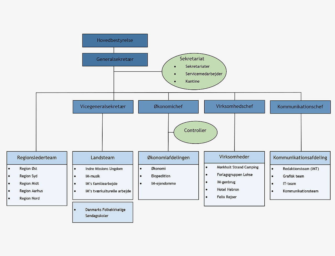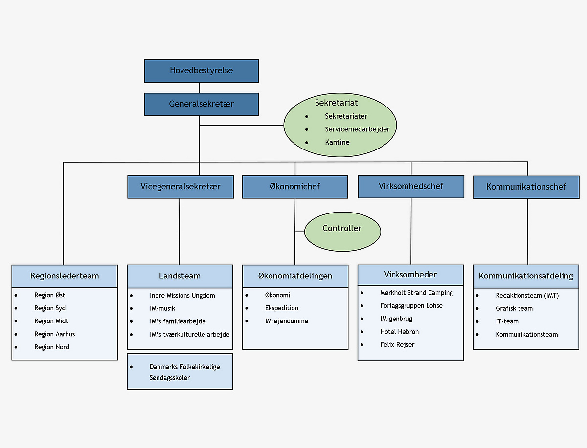 Du er altid velkommen til at kontakte Indre Missions ledelse, hvis du har kommentarer eller ideer til arbejdet. Få et overblik over, hvordan vi har organiseret arbejdet, og find ud af, hvem du skal kontakte i boksene nedenfor.